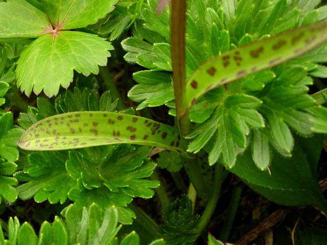 葉にウズラの卵のような斑がある