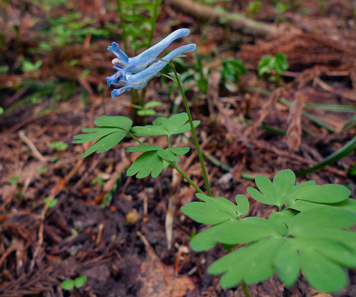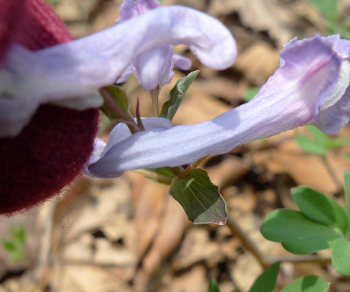 似た花にヤマエンゴサクがあります。エゾエンゴサクは花のすぐ下に付いている葉(苞又は包葉という)は