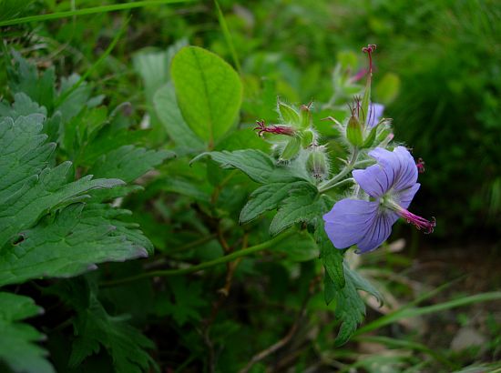 グンナイフウロとの違いがよく分かりませんが,果実の形状に違いがあるようです。チシマフウロの方が細く長く伸び,グンナイフウロは短めで先端に向かい細まるそうです。