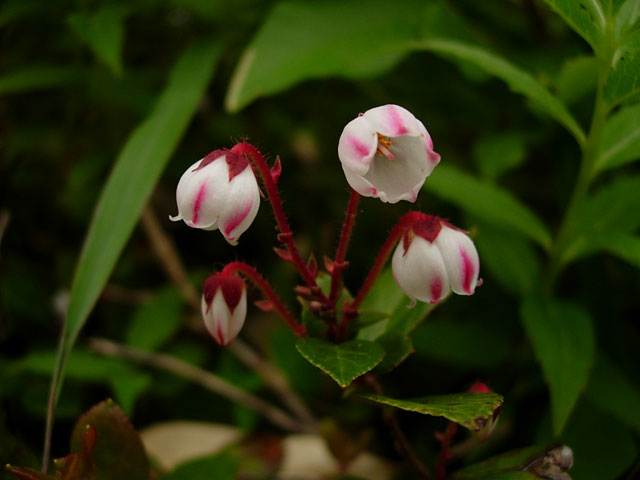 シラタマノキと葉がよく似ているが,シラタマノキは葉の先が丸く,イワハゼの葉の先端は尖っている。