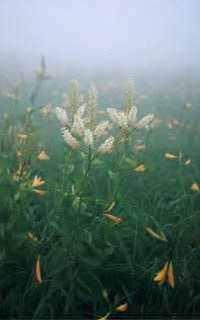 右の写真は実になった状態です。左の写真に橙色に写っているのはニッコウキスゲです。いずれも時期が終わりに近づいていました。