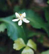 葉が3枚になるのが特徴。バイカオウレンは葉が5枚。