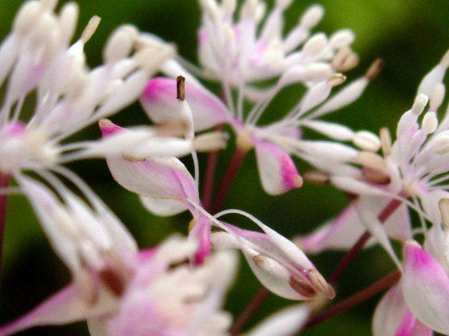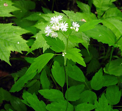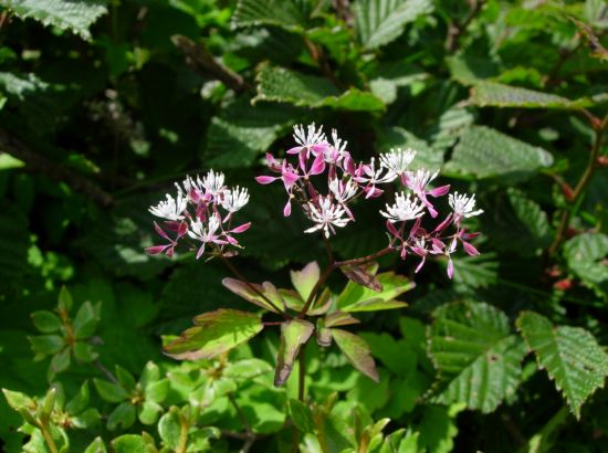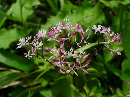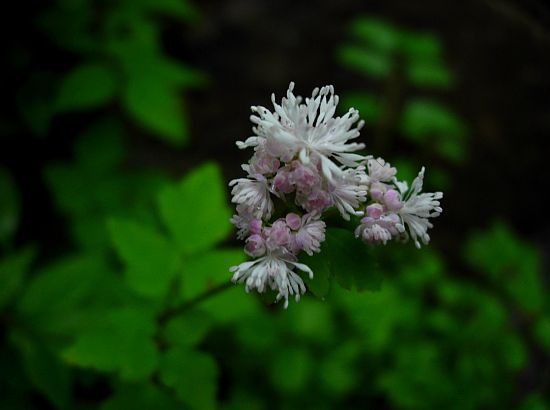 よく似た花にカラマツソウ,モミジカラマツがあります。ミヤマカラマツも含めこの3種には花びらが有りません。萼片は早落性です。白とクリーム色に見える部分は雄しべだそうです。赤く見えているのは果実です。