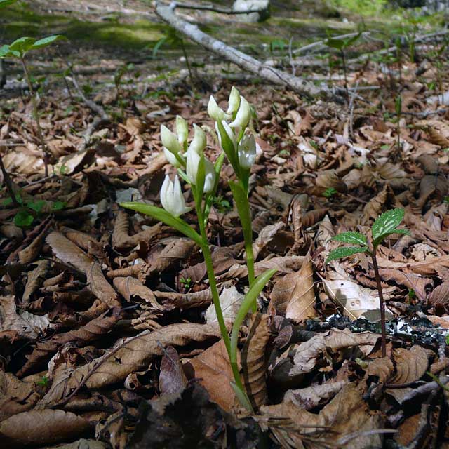 一見すると小型のギンランに似ていますが,ギンランは距が短いようです。 ユウシュンランは距が前方に突き出す様になっているので長く見えます。蕾は花王の三日月のように見えます。