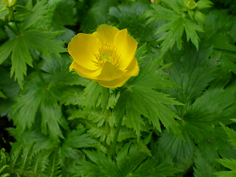 このチシマノキンバイソウは花弁の長さが,雄しべと同長か少し短い程度です。