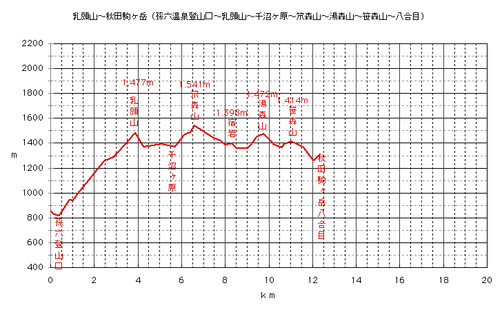 秋田乳頭山〜秋田駒ヶ岳縦走 標高図