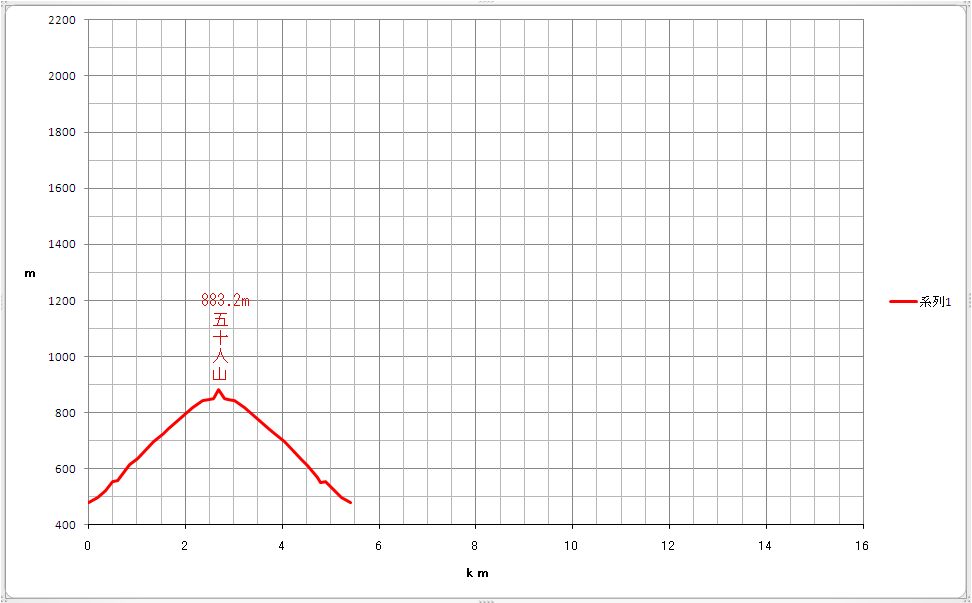 五十人山(葛尾中学校→山頂→往復)標高図