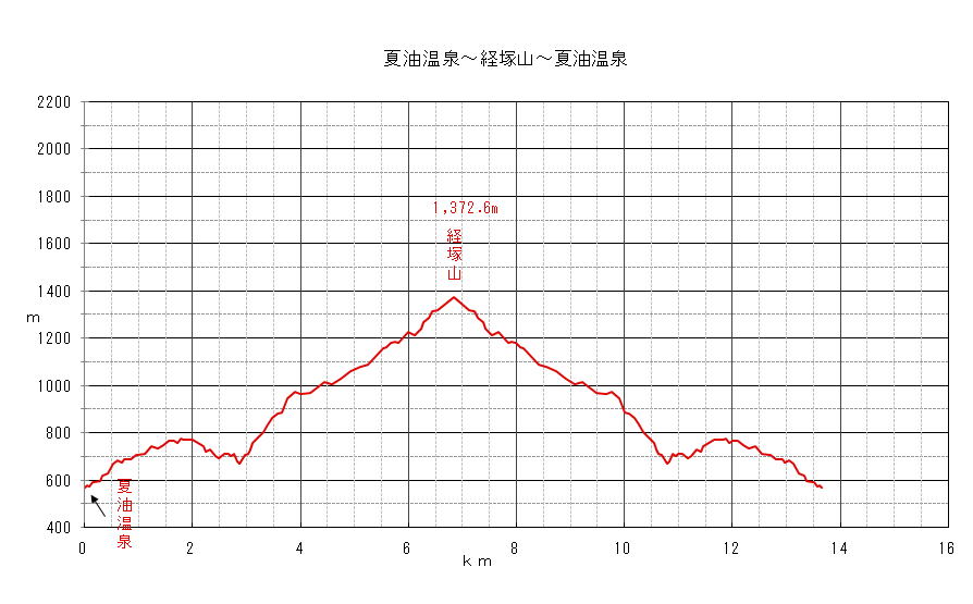夏油温泉〜経塚山〜夏油温泉 標高図