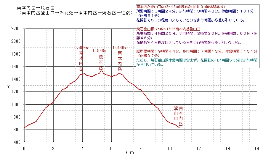 南本内岳→焼石岳 標高図