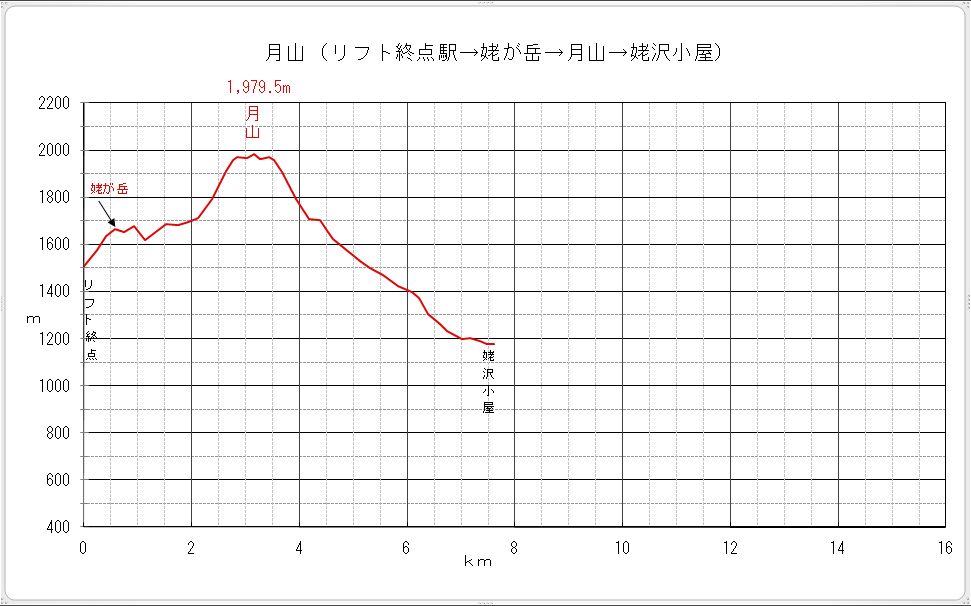 月山(リフト終点駅→姥が岳→月山→姥沢小屋)標高図
