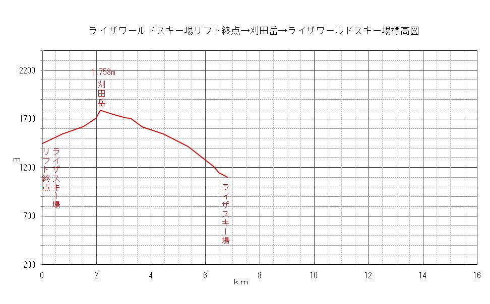 刈田岳(ライザワールドスキー場リフト終点→刈田岳→ライザワールドスキー場) 標高図