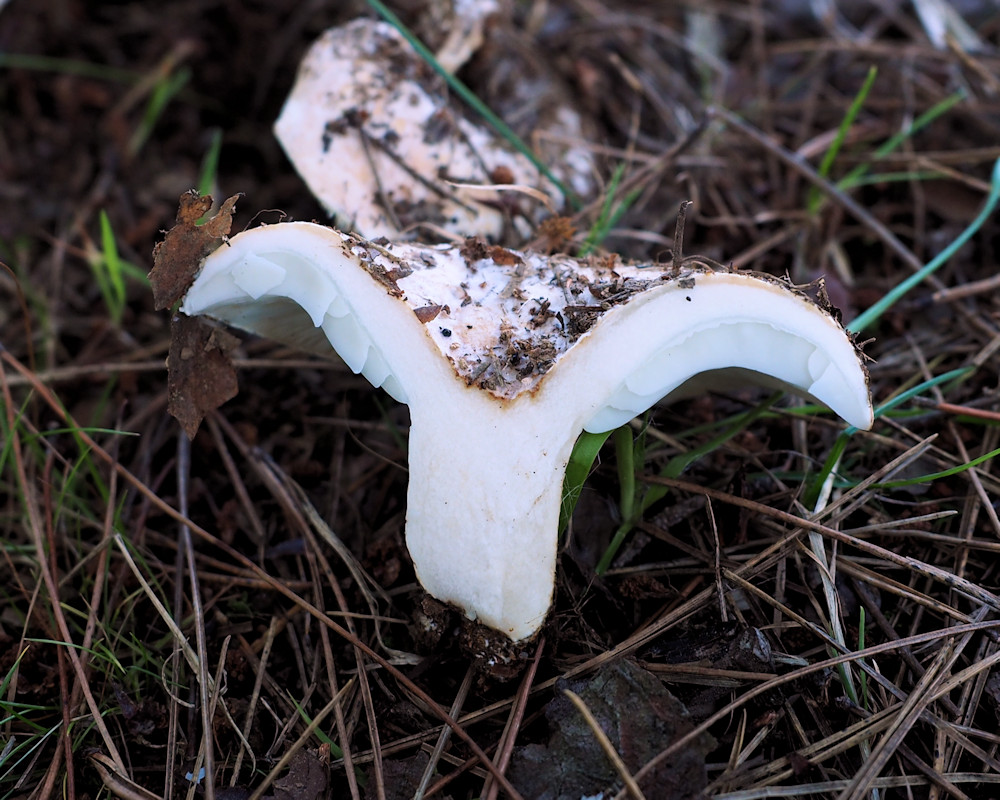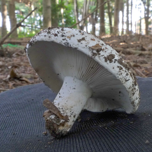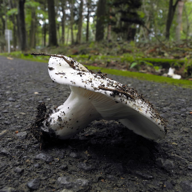 5.0-11.0cm 中央窪む饅頭形→漏斗形 縁部しばらく内巻き 粘性無し 白色→成熟で黄土色のシミ→全体が黄土褐色化