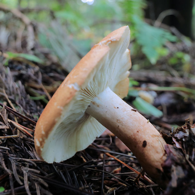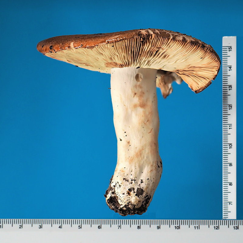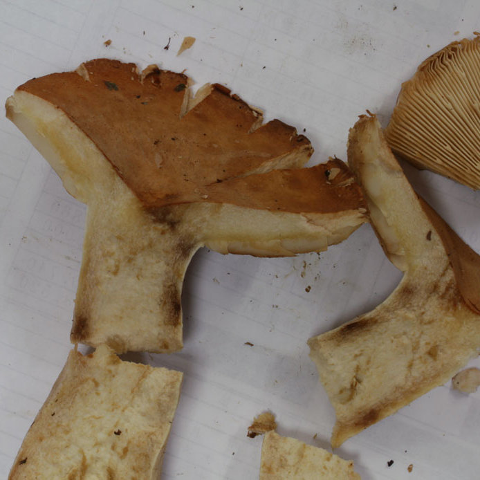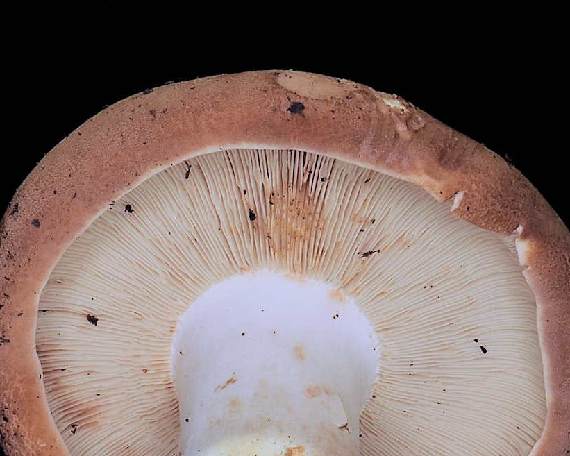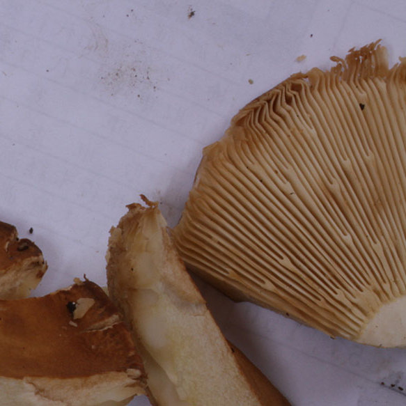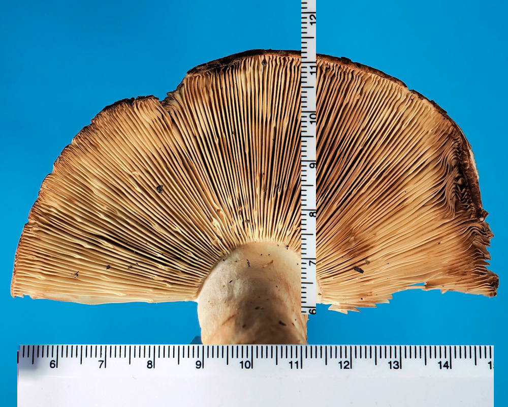 白色で触れると赤褐色に変色 上生−直生でやや密 ひだが頻繁に二股に分岐する
