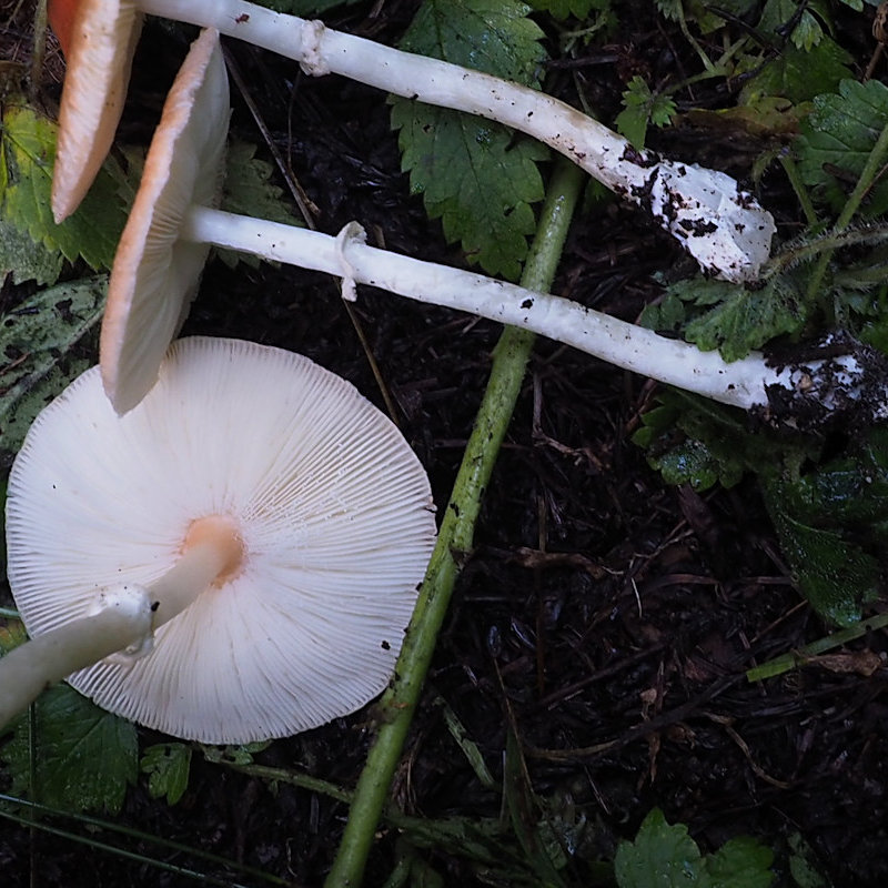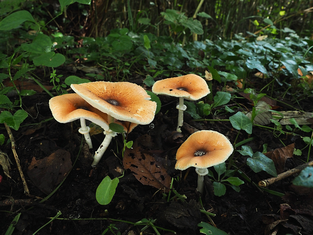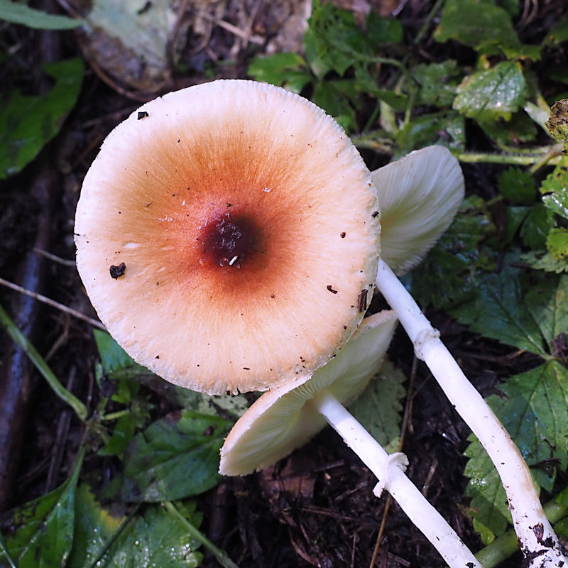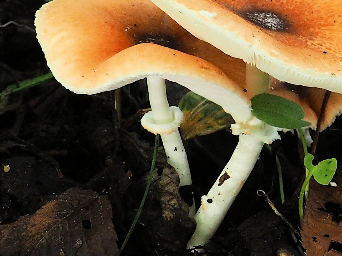 2020年(令和2年)09月28日撮影地浜通りの子実体は、つばの縁が赤みを帯びていないこと、開いた傘の表皮が破れて鱗片状になっていないことから、アカキツネガサとするにはやや疑問を持っている。