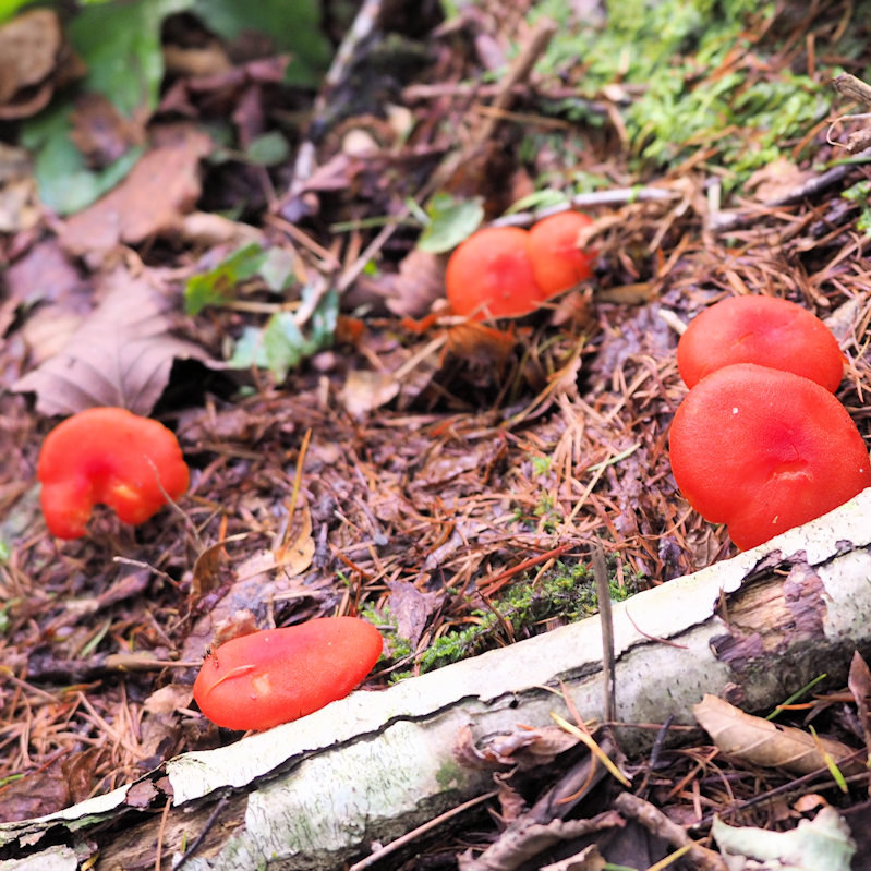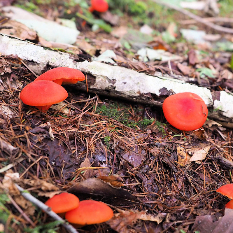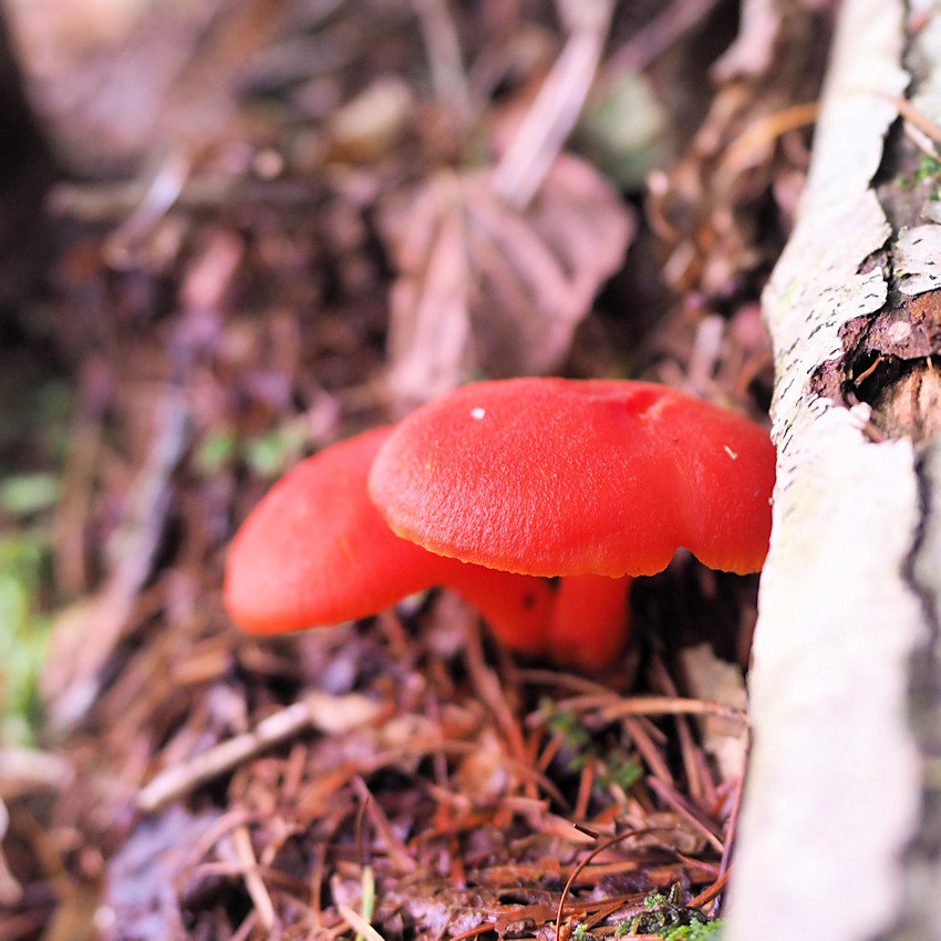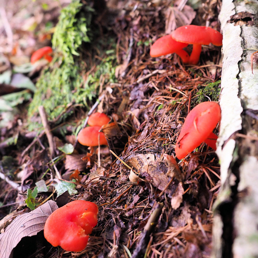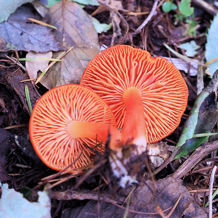 図鑑によるとアカヌマベニタケにはHygrocybe miniata f.longipesとHygrocybe miniata var miniataがある。Hygrocybe