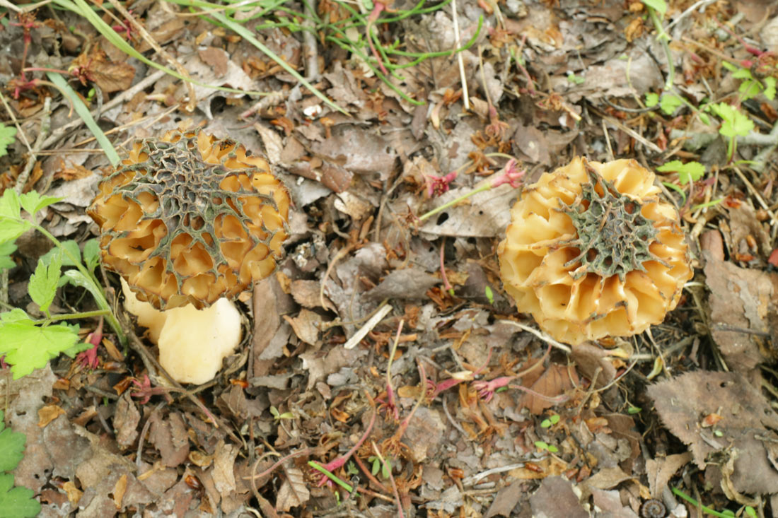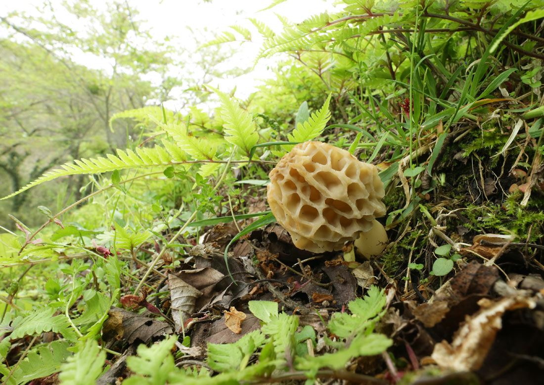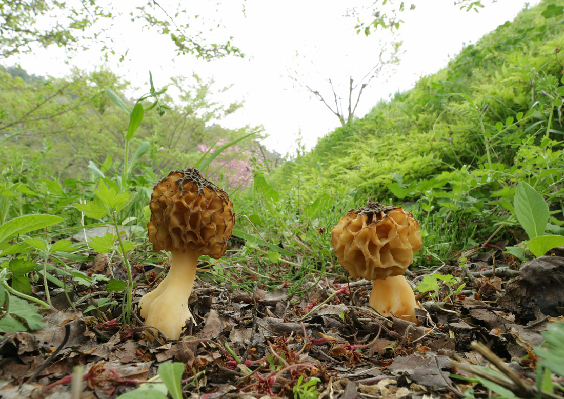 2019年(令和元年)05月10日撮影地半田山及び2016年(平成28年)05月02日撮影地宇津峰山はマルアミガサタケと思われる。