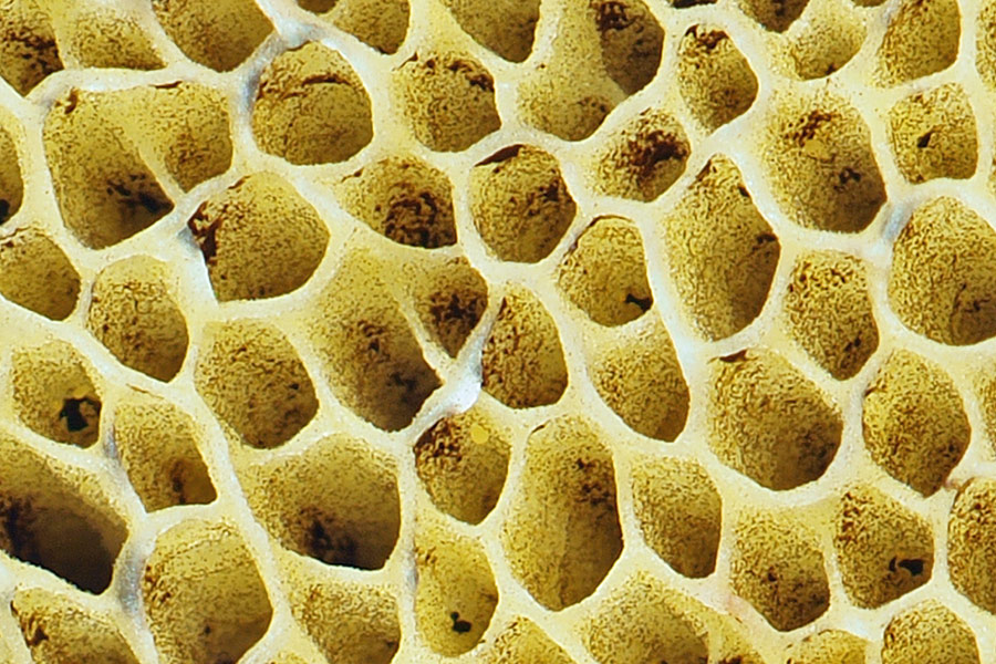 明黄色→緑黄色−オリーブ緑色 柄の周囲で陥没し上生-ほぼ離生 孔口は管孔と同色 孔口は多角形 中〜大型 管孔と孔口は傷を受けても変色しない