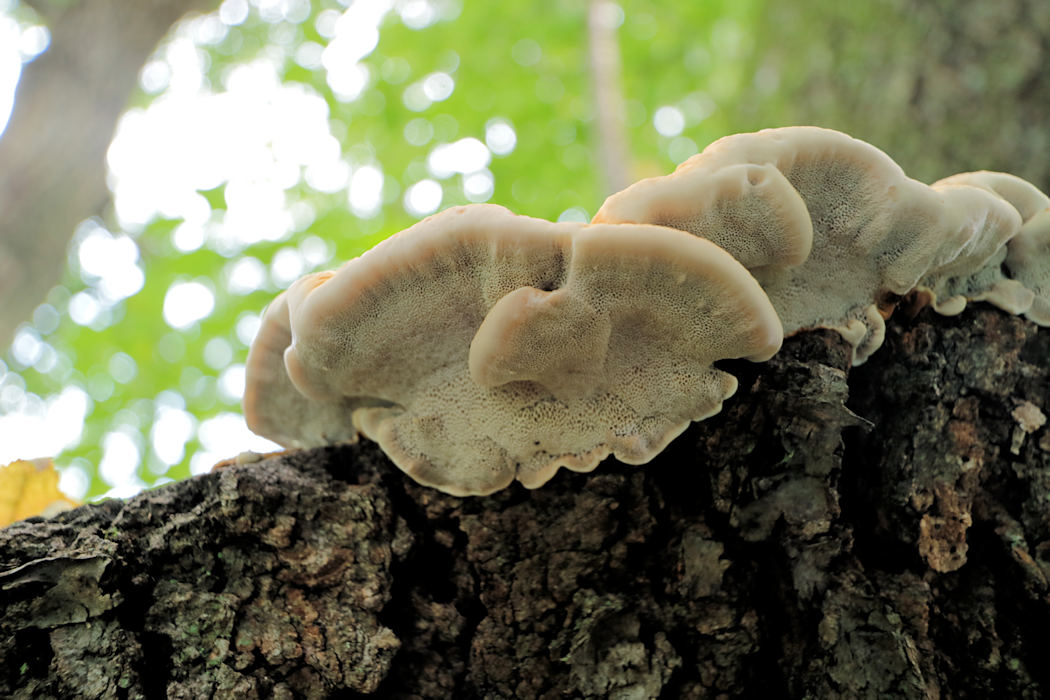 黄褐色で肉より濃色 孔口は黄白色−灰白色→灰褐色−暗褐色のしみ表す 微細 円形 6-7個/mm 孔長3-10mm