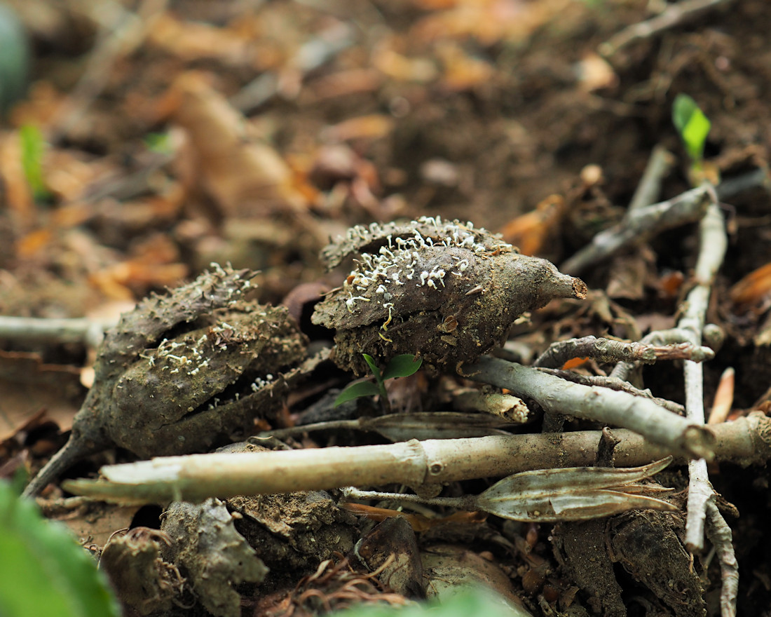 春〜初夏に林床に落ちたブナの殻斗から発生する