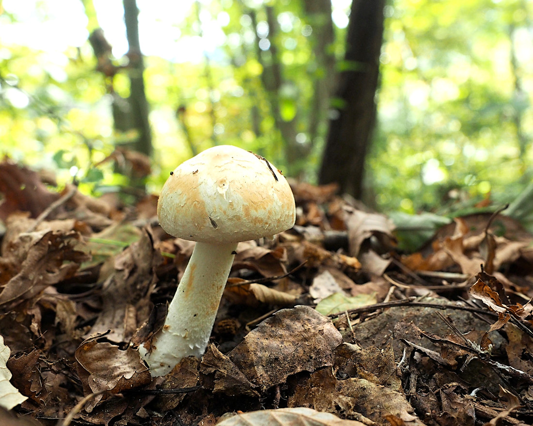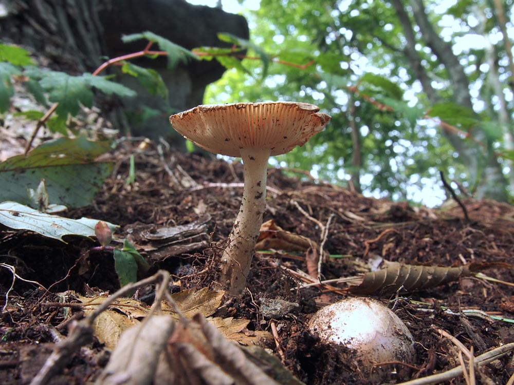 ƒAƒNƒCƒƒEƒƒRƒcƒ‹ƒ^ƒPiŠD`F—Ø’ß‘ùj@Amanita avellaneosquamosa‚Í•’Ê‚ÌHƒtƒNƒƒcƒ‹ƒ^ƒP‚æ‚è‚àƒJƒT‚Ìðü‚ª–Ú—§‚¿AƒJƒT•\–ʂɕ½–Ê“I‚ȗؕЂª‚ ‚é‚Ì‚ª“Á’¥‚Ƃ̂±‚ÆB