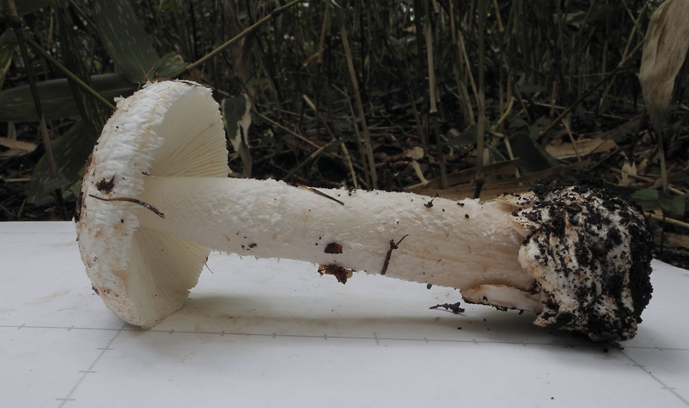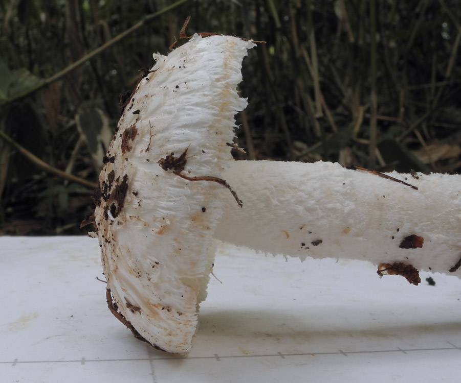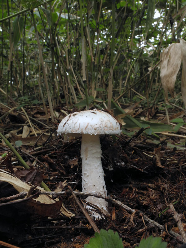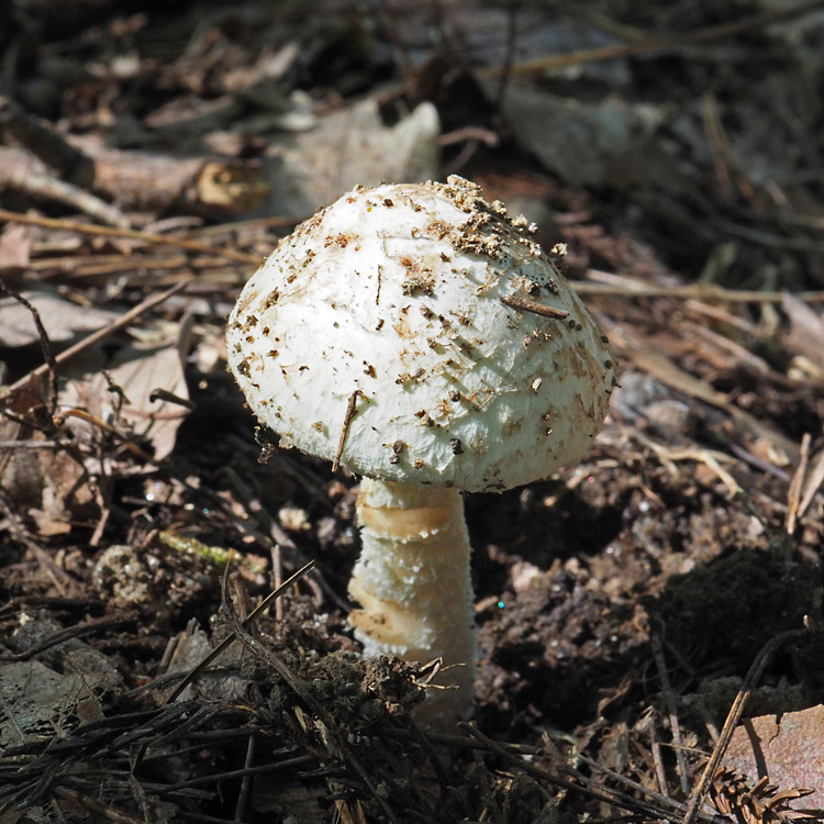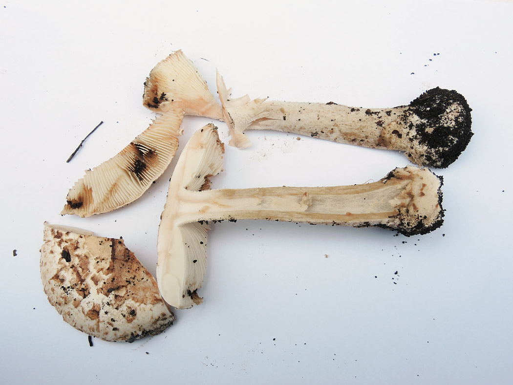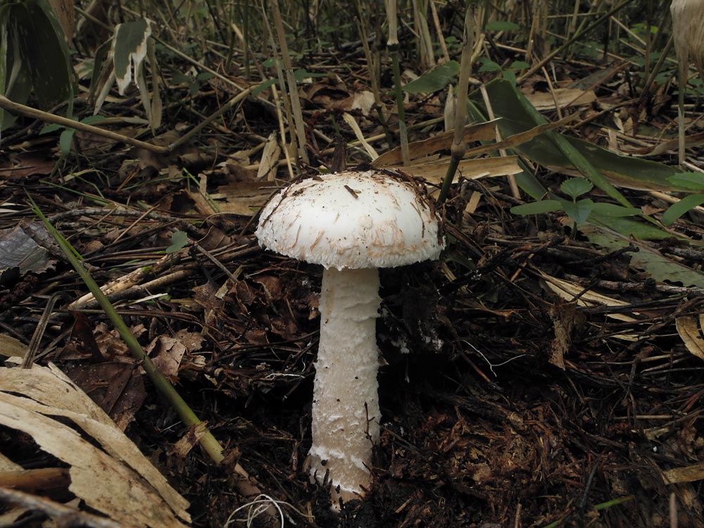 ƒVƒƒEƒƒRƒcƒ‹ƒ^ƒPi”’—Ø’ß‘ùj@Amanita clarisquamosa‚ÍAƒJƒT•\–Ê‚ª–È–Ñó‚ɂȂÁ‚Ä‚¢‚邯‚Ì‚±‚Æ‚¾‚ªA‚TŽí‚Ì”»•ʂ͓÷Šá“IŒ`‘ÔŠÏŽ@‚Å‚ÍŽŠ“ï‚Å‚ ‚邯Žv‚í‚ê‚éB