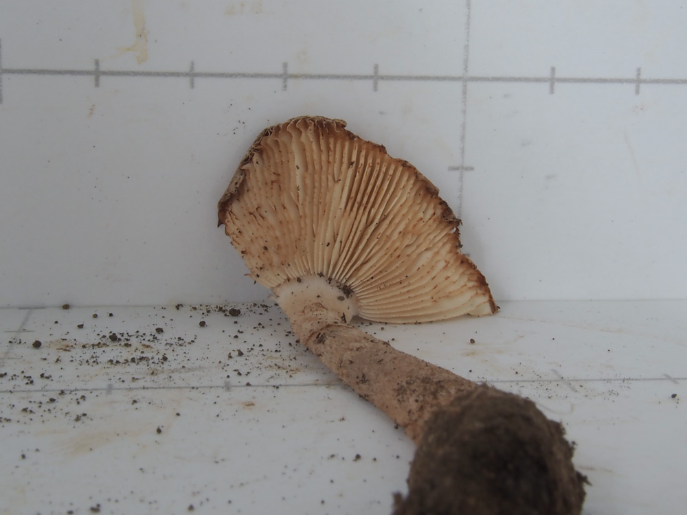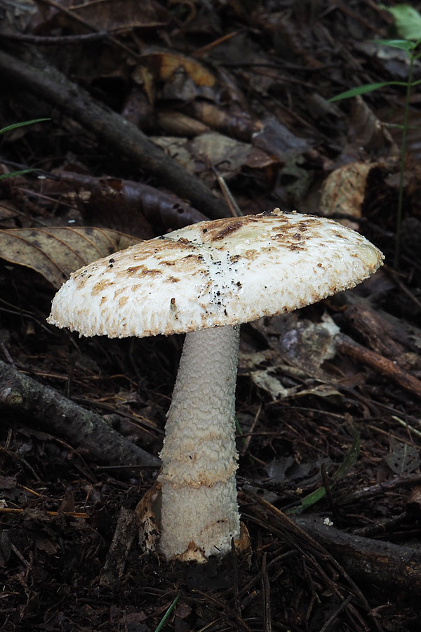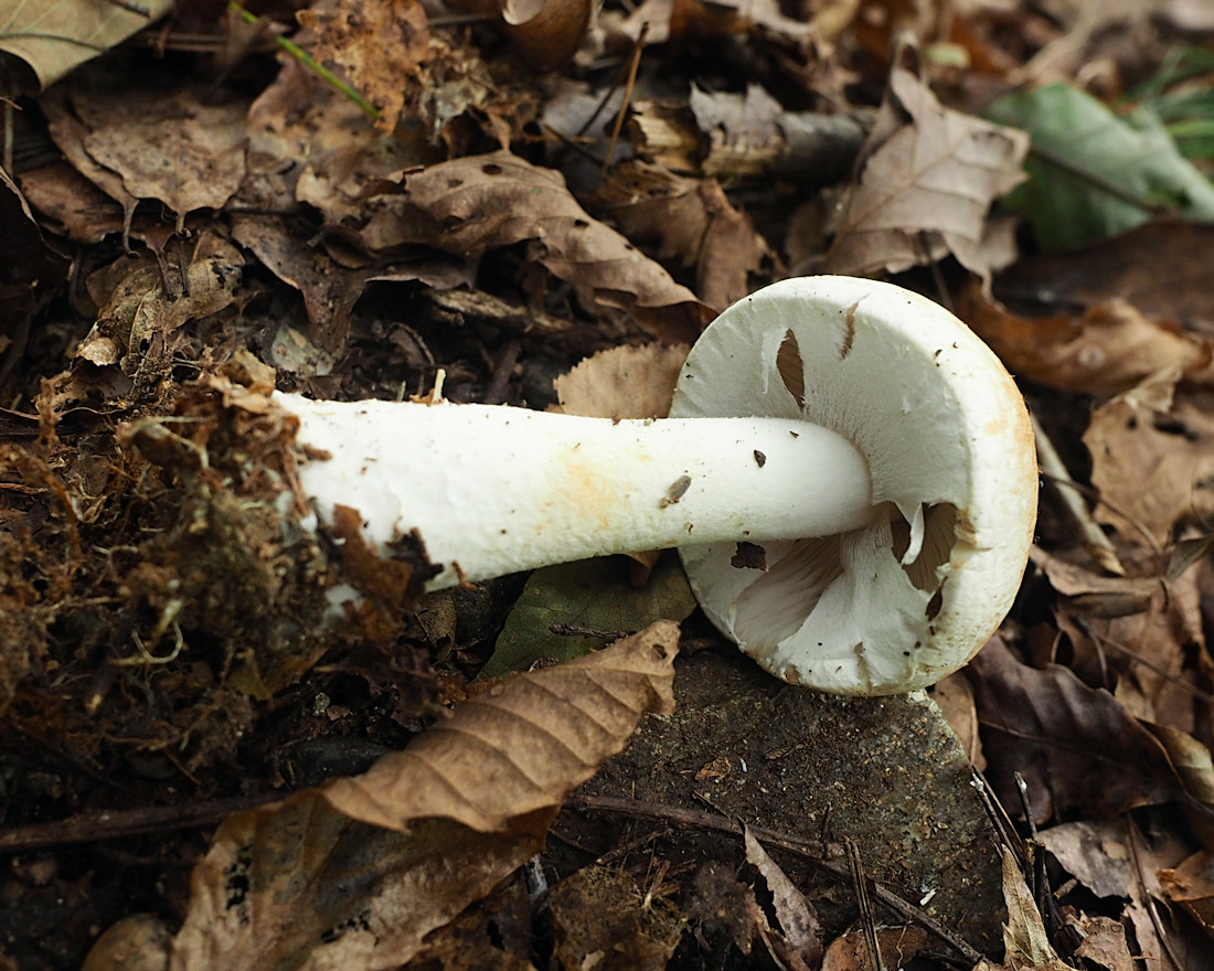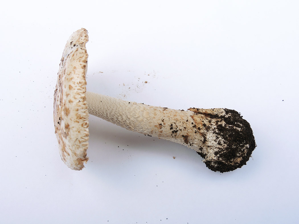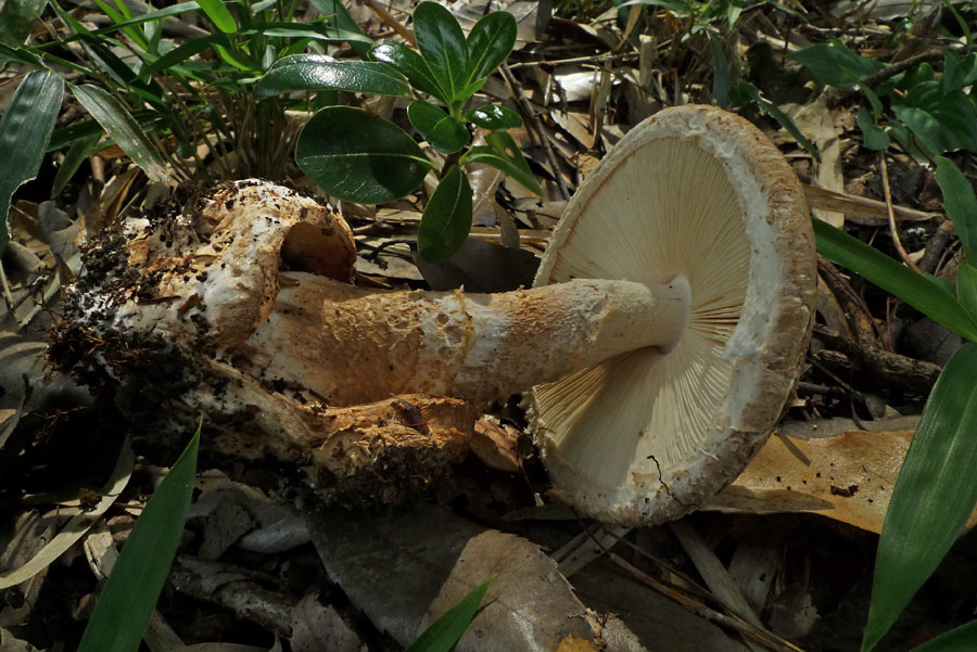 ƒVƒƒEƒƒRƒcƒ‹ƒ^ƒPi”’—Ø’ß‘ùj@Amanita clarisquamosa‚ÍAƒJƒT•\–Ê‚ª–È–Ñó‚ɂȂÁ‚Ä‚¢‚邯‚Ì‚±‚Æ‚¾‚ªA‚TŽí‚Ì”»•ʂ͓÷Šá“IŒ`‘ÔŠÏŽ@‚Å‚ÍŽŠ“ï‚Å‚ ‚邯Žv‚í‚ê‚éB