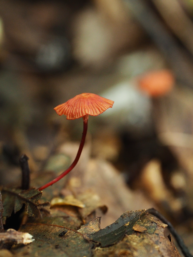 夏〜秋のころ広葉樹の落葉上に孤生または散生する(葉上性の生態)