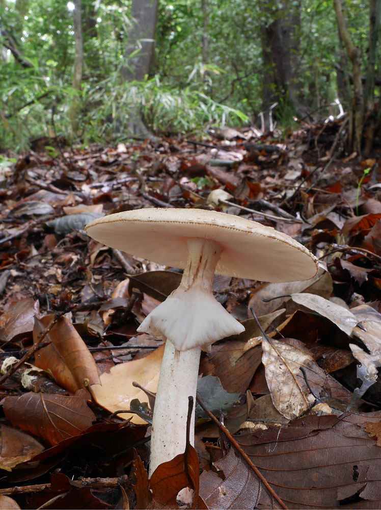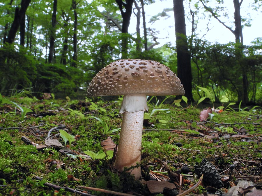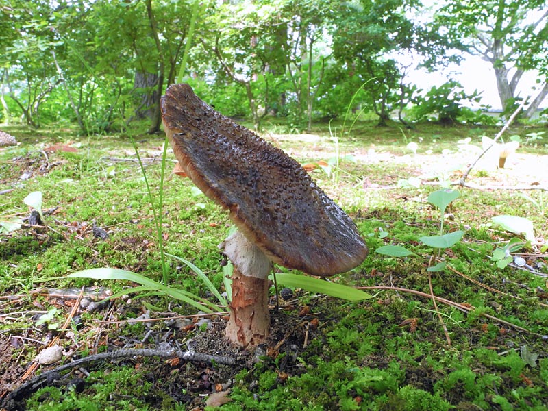夏〜秋に種々の針葉樹、広葉樹林内地上に発生する