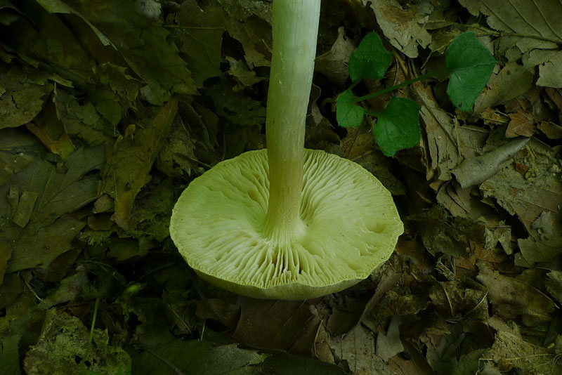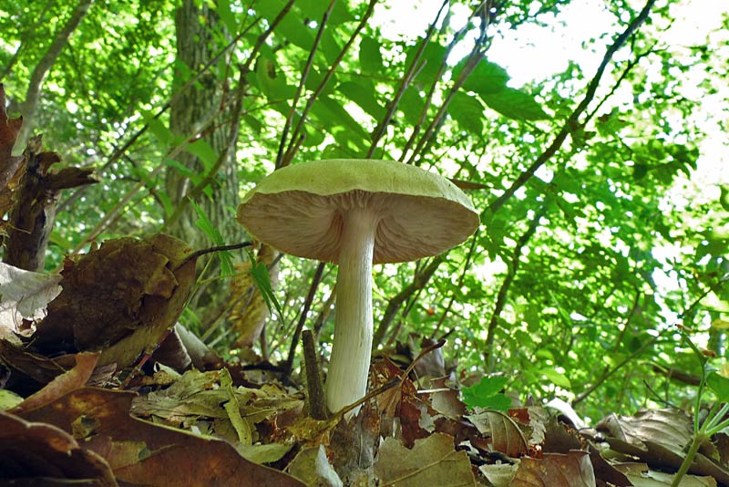 秋(9月〜10月)にコナラ・クヌギなど広葉樹林内地上に発生する