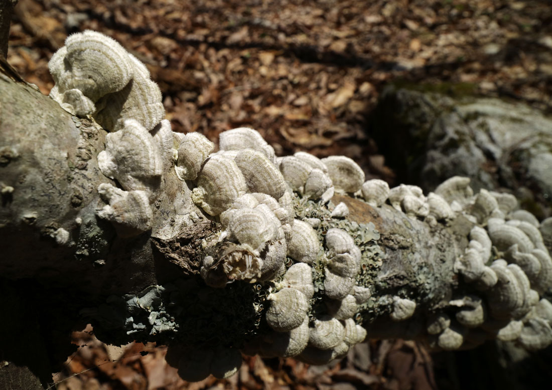 広葉樹の枯れ木上に発生する