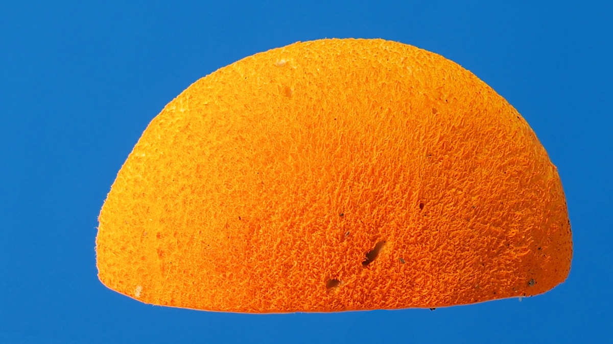 淡黄色−黄色→汚緑色−オリーブ色 孔長4mm内外 直生−上生→湾入 孔口は橙黄色に縁取られる 孔径1mm内外 傷ついても変色しない