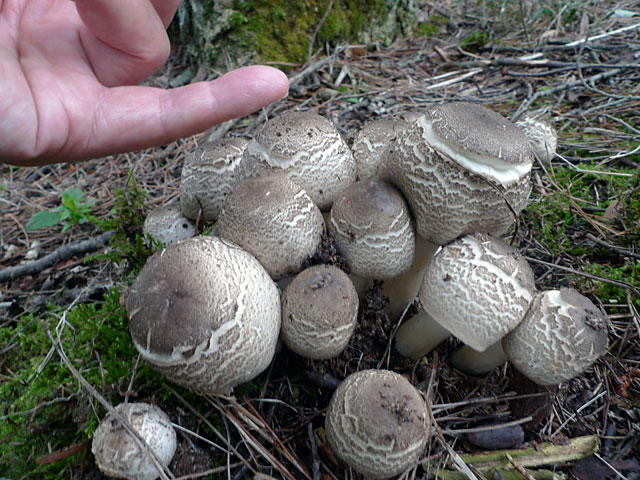 肉が多少とも赤変するもの;ハラタケ,ツクリタケ,モリハラタケ,ザラエノハラタケ。