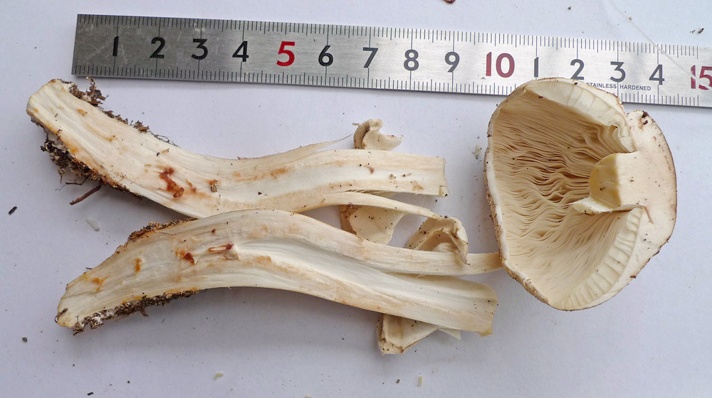 2012年(平成24年)07月20日と2012年(平成24年)07月22日撮影の逢瀬公園子実体は同一種である。そして柄の肉が淡赤褐色に変化しているので,「肉が多少とも赤変するもの」のグループと思われる。