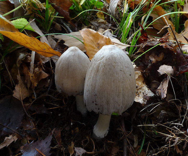 4.0-8.0cm 卵形→鐘状−円錐形→縁部反転 しばしば放射状に裂ける 灰色−淡灰褐色 灰色−帯褐色の細かい鱗片に覆われる→縁部より脱落しほとんど平滑となり溝線あらわれる