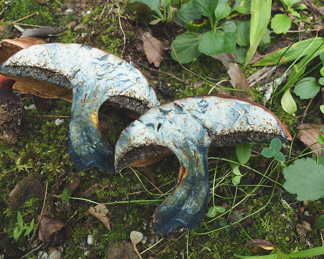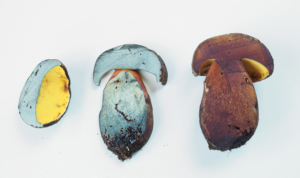 淡黄色 傷つくと速やかに強く青変 特別な味はなく 線香のような臭いがある
