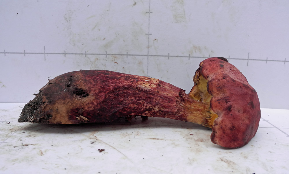 2019年(令和元年)08月31日 撮影地 浜通りの子実体は、全体に赤みが少ないことと、観光の長さがやや長く感じられることから疑問符付きである。
