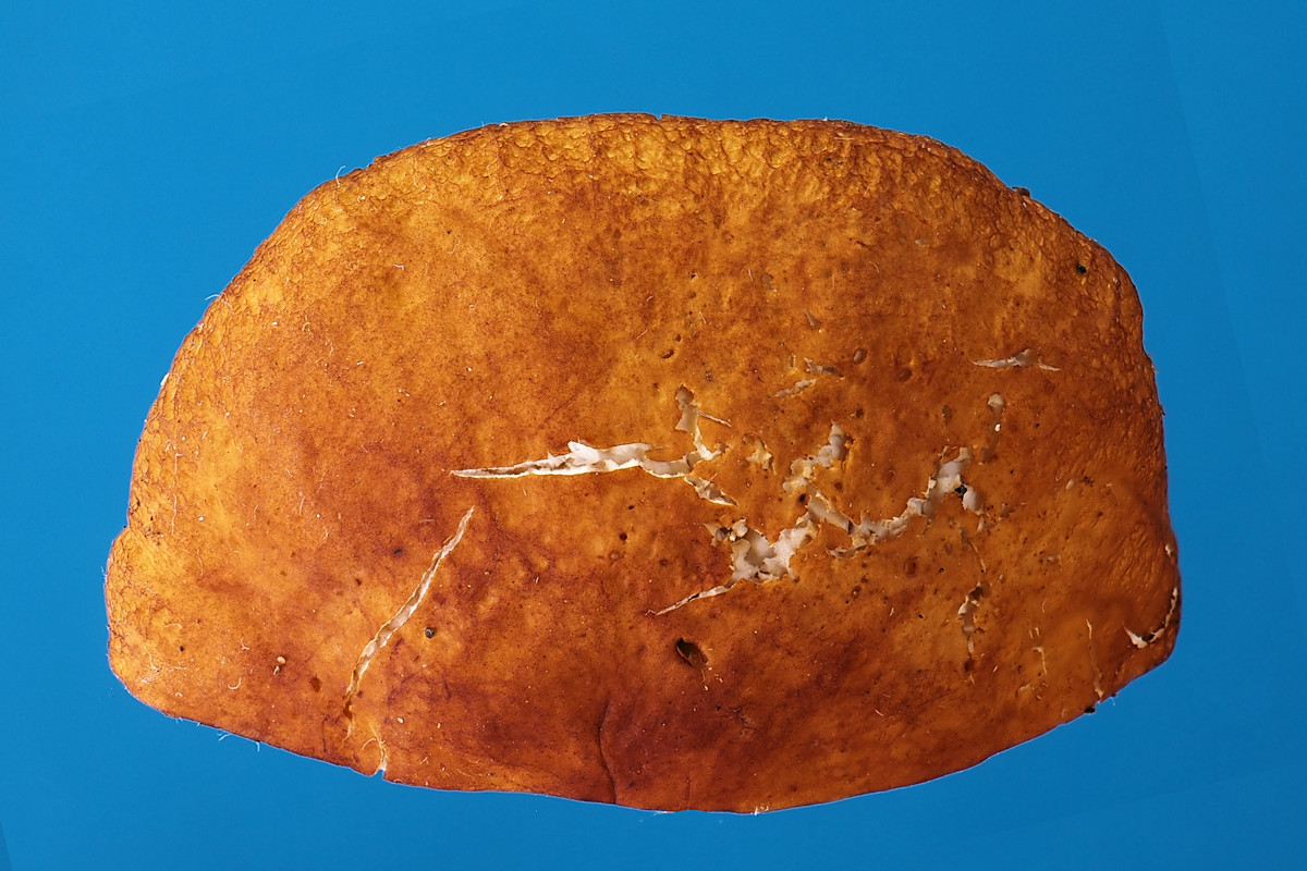 3.0-7.0cm 丸山形→饅頭形→ほぼ平ら 赤橙色(樺桜の樹皮の色) 放射状のしわあり