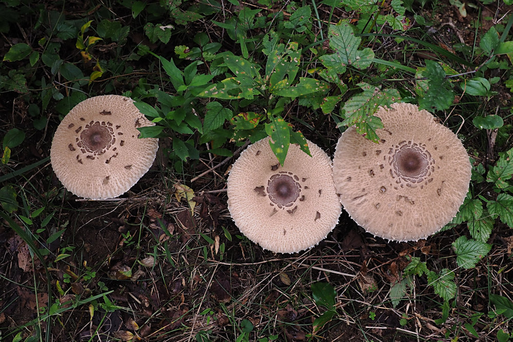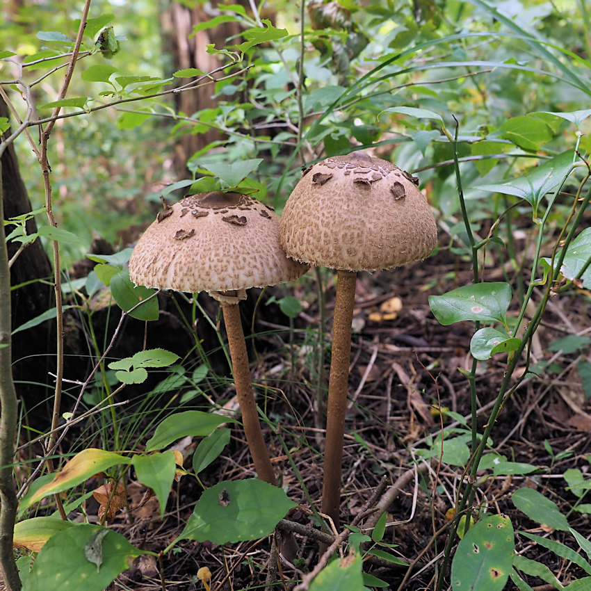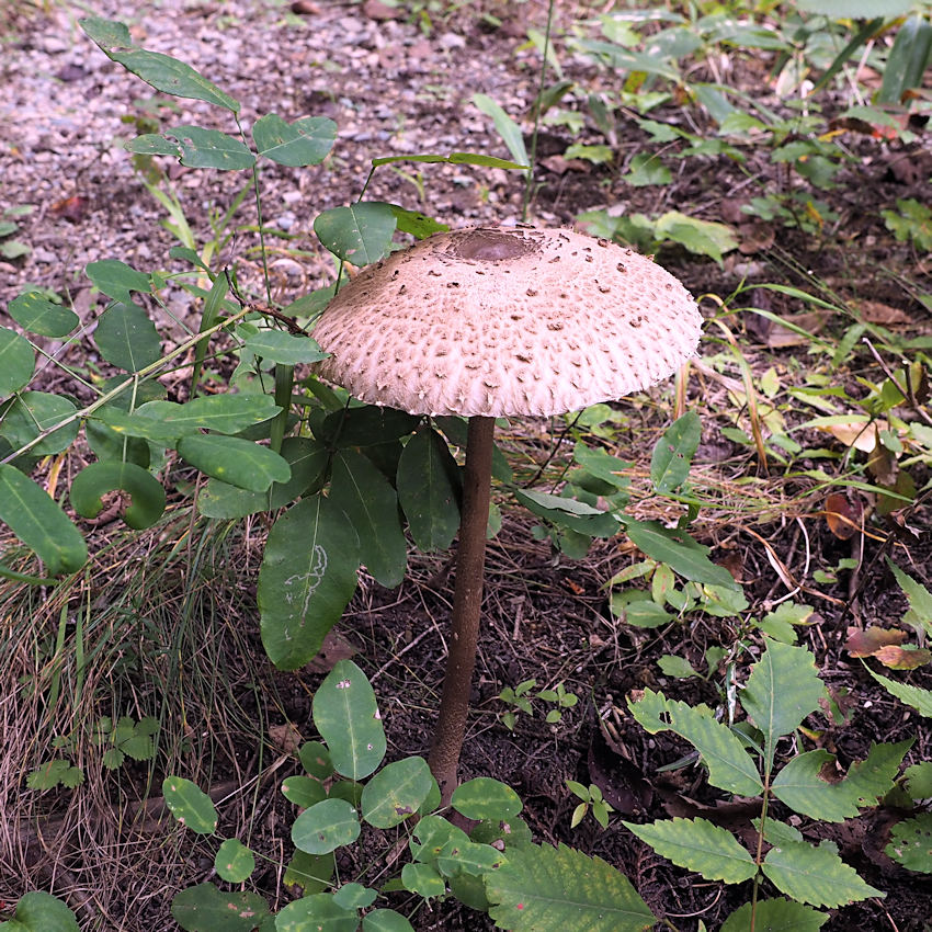 似た種のカラカサタケモドキは原色日本新菌類図鑑によると、柄がカラカサタケに比べ太短く、肉に赤変性があるとのこと