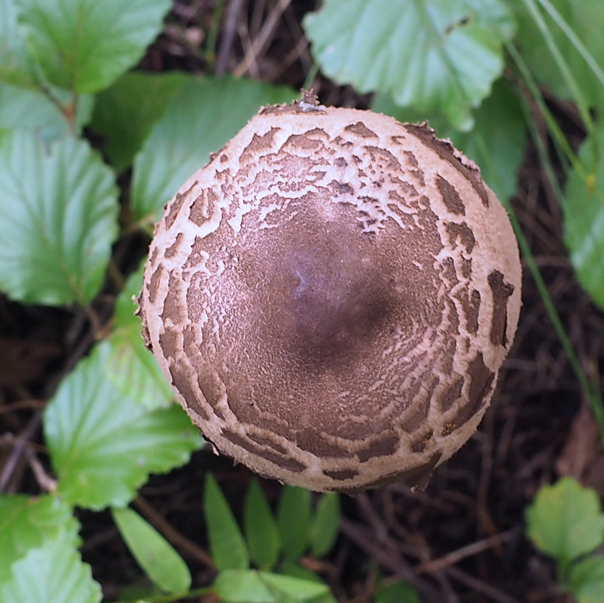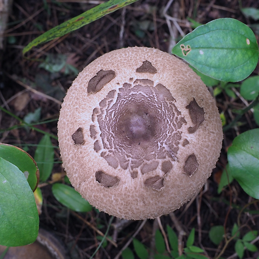 8.0-20.0cm 球形−卵形→中高の平 表皮は褐色−灰褐色→開くにしたがい亀裂を生じ著し鱗片になる 地肌は淡褐色−淡灰褐色で海綿質