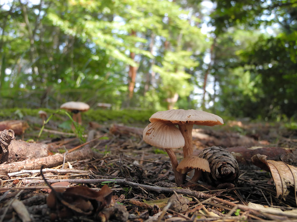 夏〜秋にアカマツ、コナラ、サクラ林など林地上に発生する