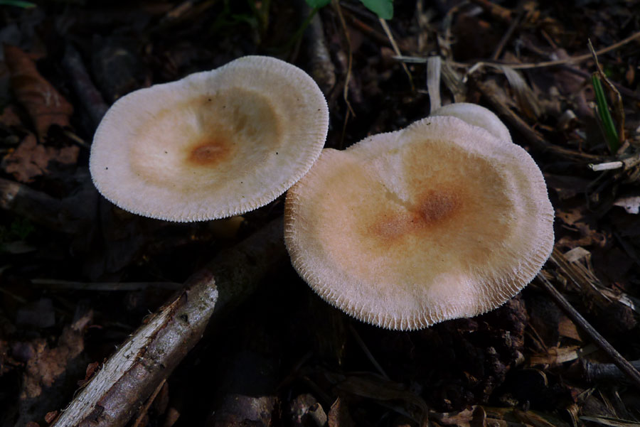 カヤタケは同定にまったく自信がない。取りあえずカヤタケらしききのこを掲載しておく。それぞれに図鑑記述と合わない部分がある。