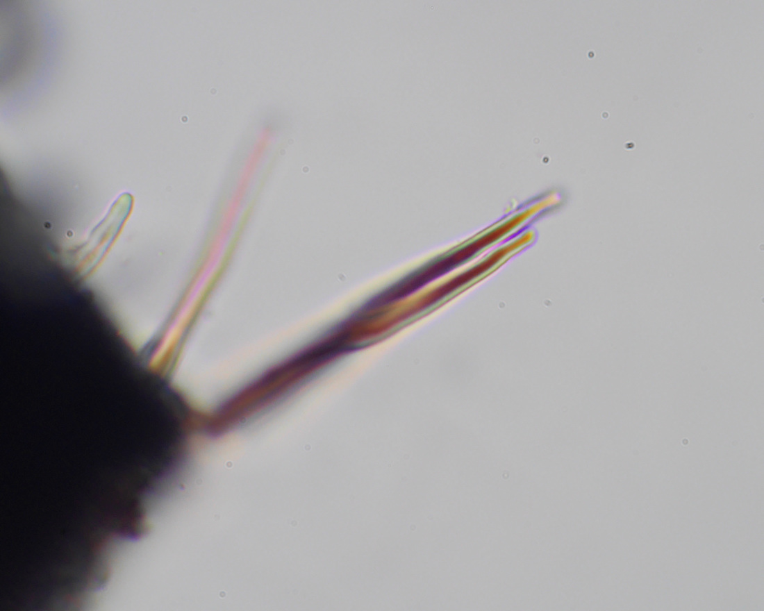 柄のシスチジアは先端が尖っているか丸みを帯びている。そして目に見える剛毛で直立している。デキストリノイドである