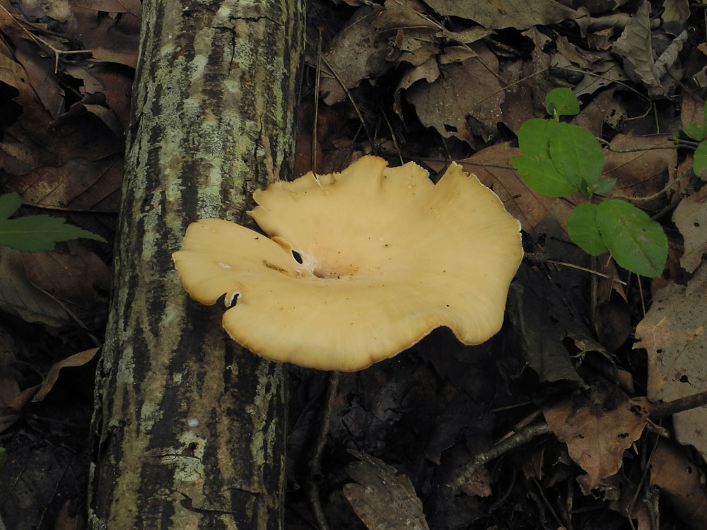 夏〜秋に広葉樹倒木−枯木上に発生する