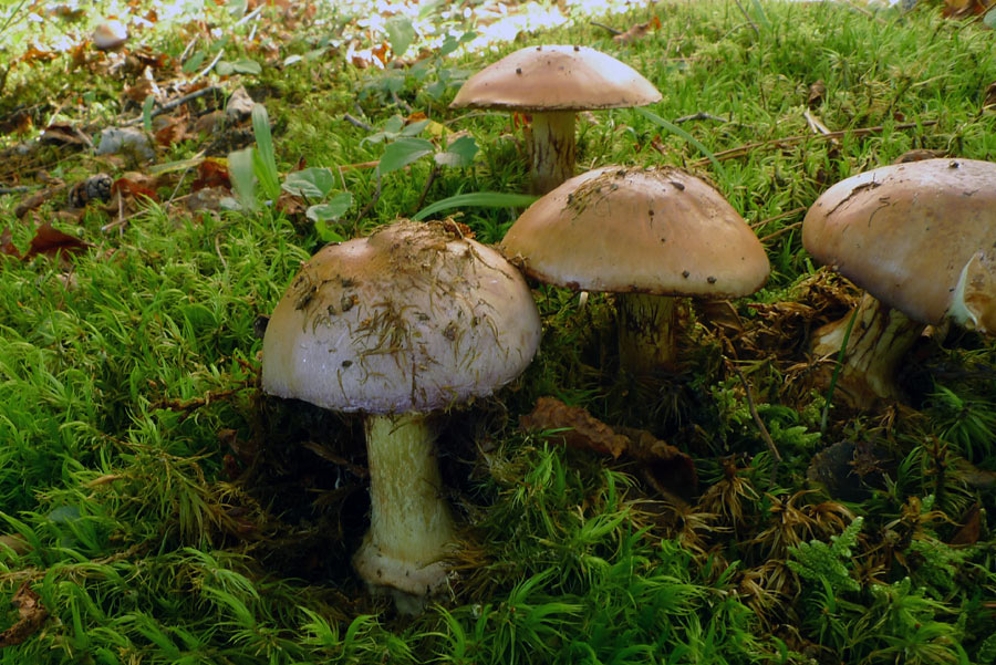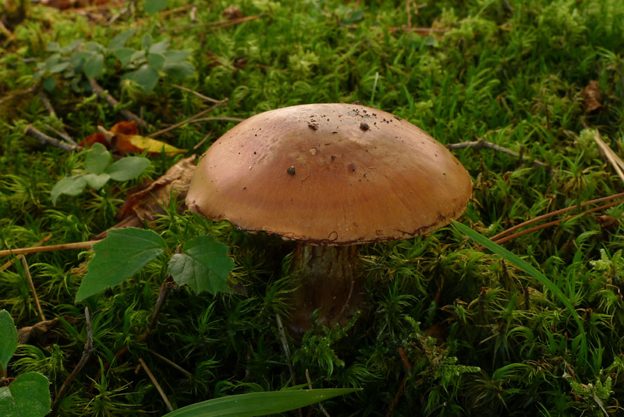5.0cm前後 饅頭形→平 赤茶褐色 周辺は帯紫赤茶褐色 湿時粘性あり