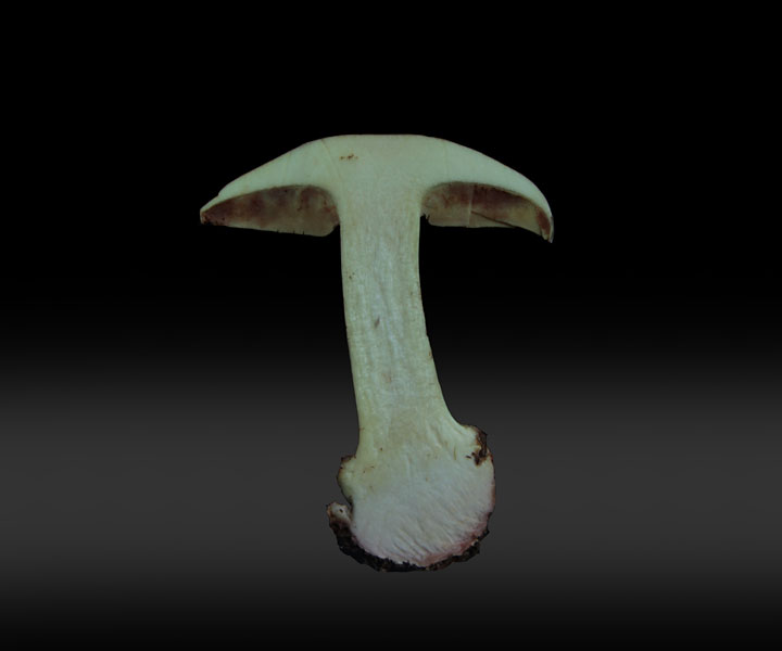 白色 傘と柄は黄変性あり?−基部は変色性無し? におい弱い 味温和