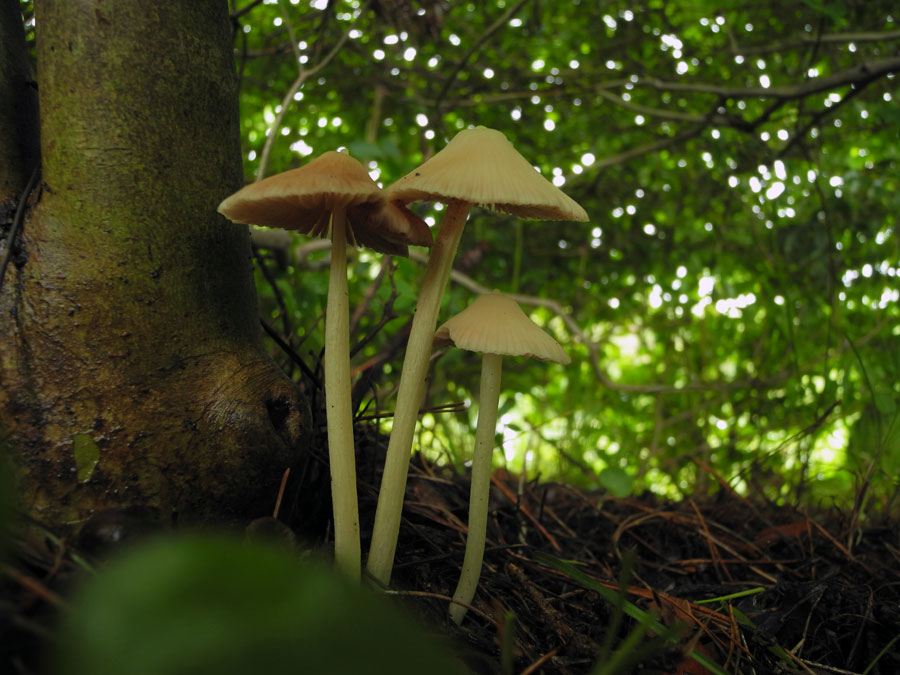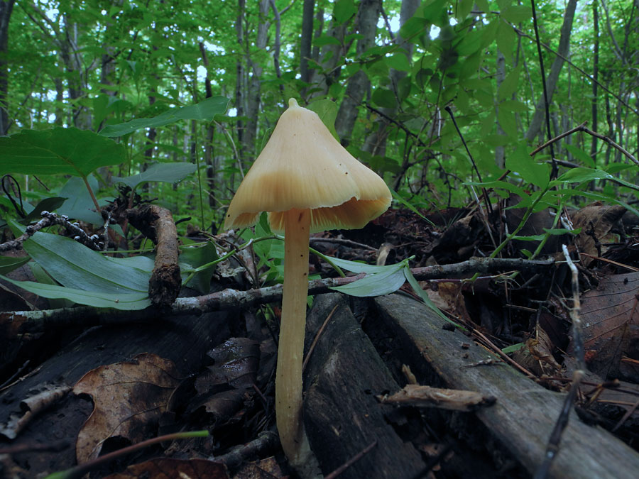 夏〜秋に林内腐葉上に発生