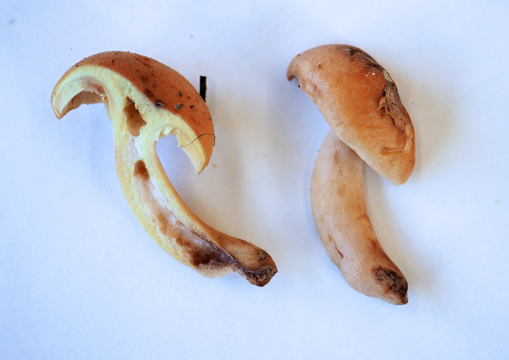 夏〜秋にアカマツ・広葉樹混成林地上に発生する