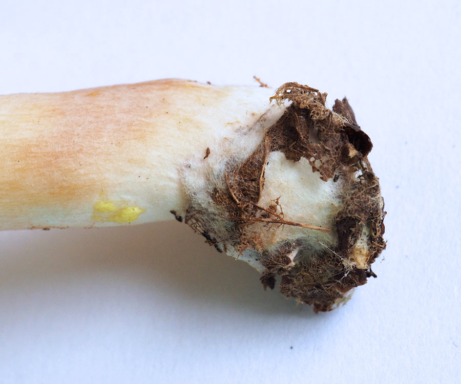 クリーム色 胞子は類球形−広卵形 疣や不完全網目あり