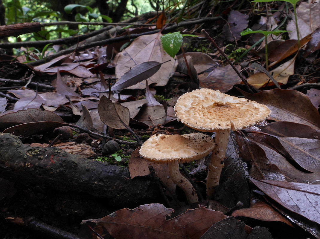 2.0-5.0cm 円錐状鐘形→中高の平ら 淡黄土色→やや濃色化 繊維状 粘性なし ときにひび割れてささくれ状鱗片生じる