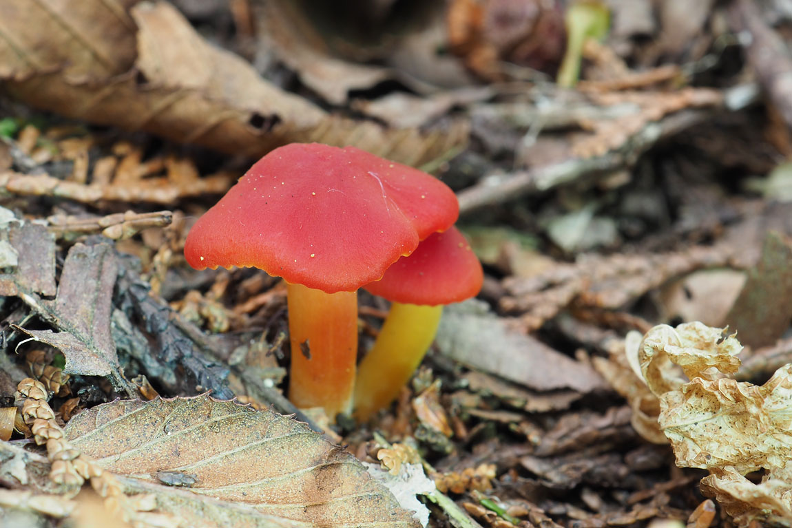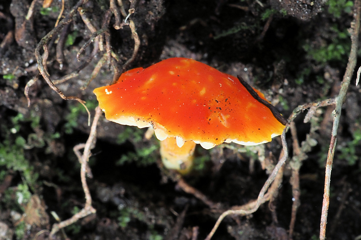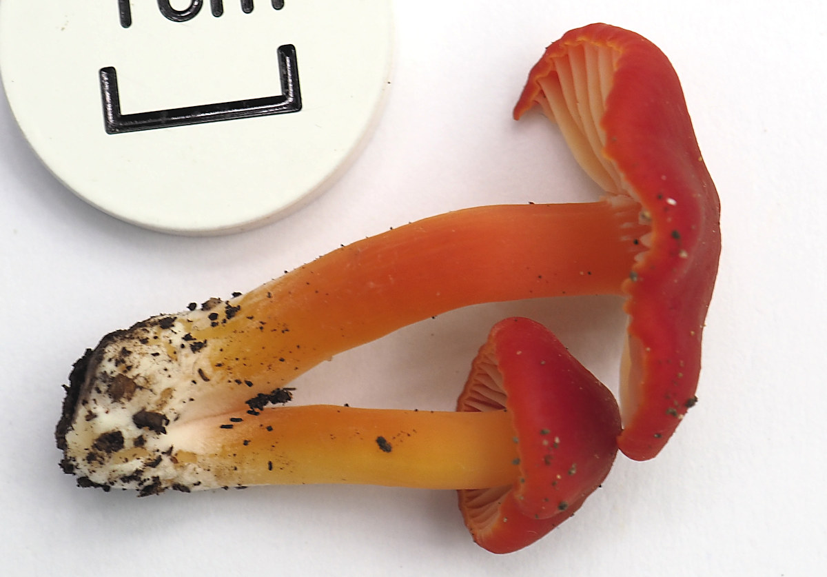 類似種のベニヤマタケと考えていたが、図鑑記述より小型であること、傘と柄の色、ひだの色と柄への付き方が、コベニヤマタケの図鑑記述とほぼ整合していることからコベニヤマタケとした。一点気になることは、いずれにしても胞子を含めた精細な検鏡が必要と思われる。